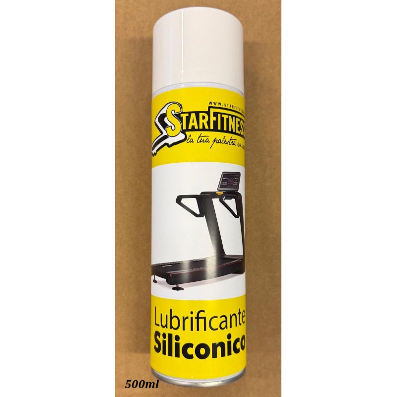 Bomboletta da 500ml di olio silicone spray professionale STARFITNESS particolarmente studiato per la massima scorrevolezza del nastro del vs. tapis roulant allungando evidentemente la vita del motore e del nastro stesso e limitando fastidiose scariche elettrostatiche. Consigliato e raccomandato come riportato nel libretto manutenzione dalle maggiori case costruttrici. Molto pratico e facile da usare dotato anche di beccuccio salva goccia. Consigliamo 3/4 trattamenti per mese spruzzando direttamente sulla tavola sottostante il nastro da distanza ravvicinata nella zona centrale sollevando prima a mano il lembo del nastro da un lato poi dall'altro lasciando una striscia di circa 50/60 cm. di prodotto. Ovviamente questo prodotto può essere anche usato dove necessita una buona lubrificazione come snodi ellittiche, multifunzioni e in generale su ogni macchinario fitness , nelle aste di calciobalilla(bigliardini) ma anche come protettivo da ossidazione o come ottimo lucidante ravvivante protettivo per cruscotti auto o parti in plastica in generale.